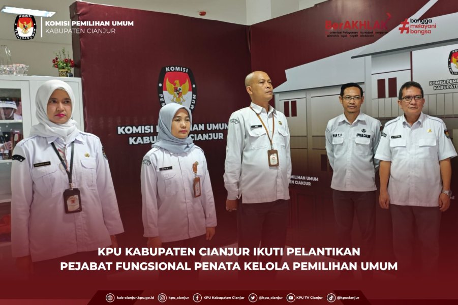 Cianjur - Sebanyak tiga pegawai KPU Kabupaten Cianjur resmi dilantik dan diambil sumpah/janji sebagai Pejabat Fungsional Penata Kelola Pemilihan Umum, Kamis (22/1). Pelantikan dilaksanakan secara daring melalui Zoom Meeting dan diikuti dari Ruang Telekonferensi KPU Kabupaten Cianjur. Prosesi sumpah/janji dipimpin langsung oleh Sekretaris Jenderal KPU RI, Bernad Dermawan Sutrino, sementara arahan disampaikan oleh Ketua KPU RI, Mochammad Afifuddin. Dari KPU Kabupaten Cianjur, kegiatan ini dihadiri oleh Sekretaris KPU Kabupaten Cianjur, Muhammad Thomas Iqbal, serta Kasubbag Partisipasi, Hubungan Masyarakat, dan Sumber Daya Manusia, Ipan Yuspian Firmansyah. Dalam arahannya, Ketua KPU RI menegaskan bahwa jabatan fungsional memiliki peran strategis dalam memperkuat tata kelola organisasi serta mendorong peningkatan kualitas layanan kepemiluan. Jabatan fungsional diharapkan menjadi motor penggerak profesionalisme aparatur yang bekerja berbasis kompetensi, integritas, dan akuntabilitas. Pelantikan Pejabat Fungsional Penata Kelola Pemilihan Umum ini merupakan bagian dari komitmen KPU dalam membangun kelembagaan yang adaptif dan berkelanjutan, guna mendukung penyelenggaraan pemilu dan pemilihan yang bersih, transparan, serta dipercaya oleh publik. #KPUMelayani ....