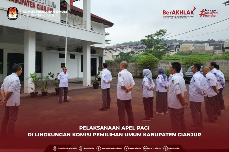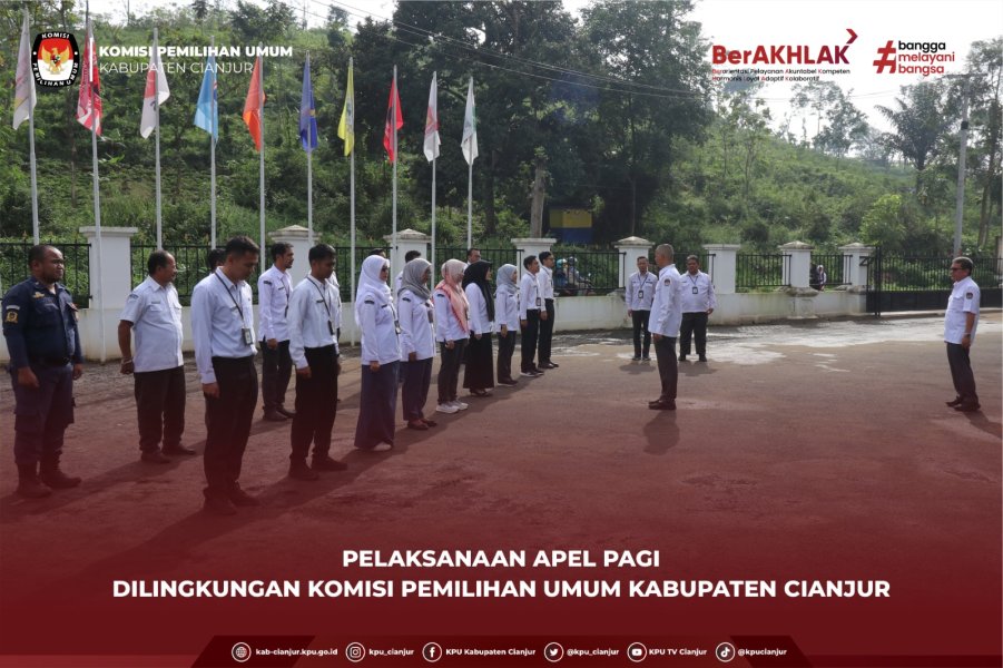 Cianjur - Komisi Pemilihan Umum (KPU) Kabupaten Cianjur melaksanakan apel pagi rutin pada Senin (26/1) di halaman Kantor KPU Kabupaten Cianjur. Kegiatan Apel pagi rutin ini juga menjadi sarana evaluasi internal sekaligus mendorong budaya kerja yang profesional dan kolaboratif di lingkungan KPU Kabupaten Cianjur. Apel dipimpin oleh Sekretaris KPU Kabupaten Cianjur, Muhammad Thomas Iqbal, yang dalam arahannya menekankan pentingnya kedisiplinan dalam menjalankan tugas dan tanggung jawab kelembagaan. Beliau juga menginformasikan mengenai pelaksanaan Latihan Dasar (Latsar) CPNS yang mulai dilaksanakan pada tanggal 26 Januari hingga 6 Mei. Latsar ini bertujuan untuk membentuk aparatur yang profesional, berintegritas, dan memiliki kompetensi yang sesuai dengan standar pelayanan publik di lingkungan KPU. Selain menekankan kedisiplinan, Sekretaris KPU Kabupaten Cianjur juga menyoroti pentingnya kerja sama dan kolaborasi antarunit dalam mendukung seluruh program dan kegiatan KPU. Menanamkan budaya kerja yang lebih disiplin, terencana, dan akuntabel, sekaligus meningkatkan motivasi serta kapasitas sumber daya manusia di lingkungan KPU Kabupaten Cianjur. Melalui kegiatan apel pagi rutin ini, seluruh jajaran KPU Kabupaten Cianjur diharapkan mampu menjalankan tugas dengan profesionalisme tinggi, menjaga integritas, serta memperkuat koordinasi antarunit, sehingga pelayanan kepada masyarakat dan pemangku kepentingan dapat terselenggara dengan lebih efektif dan optimal. #KPUMelayani ....