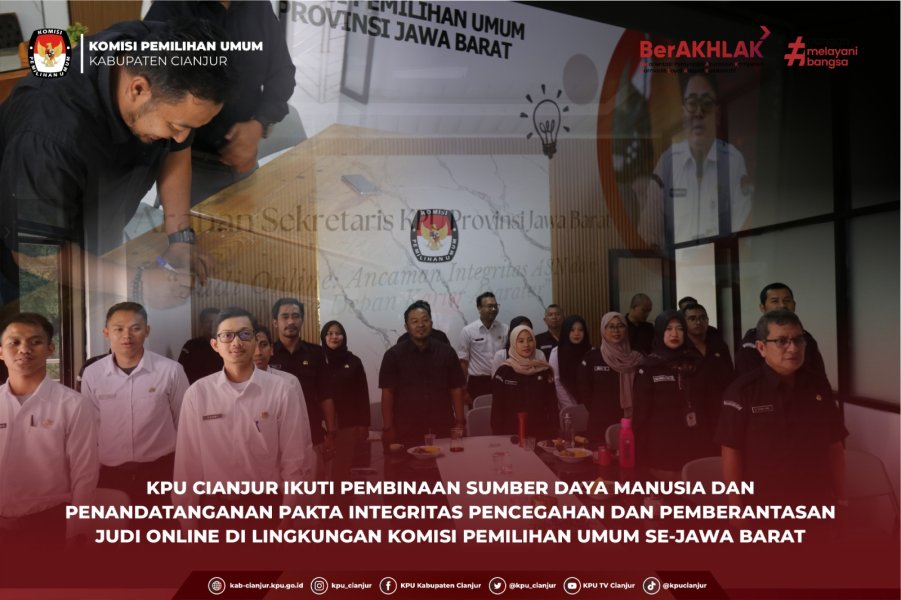 Kabupaten Cianjur Ikuti KPU Kabupaten Cianjur Ikuti Kegiatan Pembinaan SDM KPU Provinsi Jawa Barat (Judi Online Ancaman Integritas ASN dan Masa Depan Karier Aparatur)
