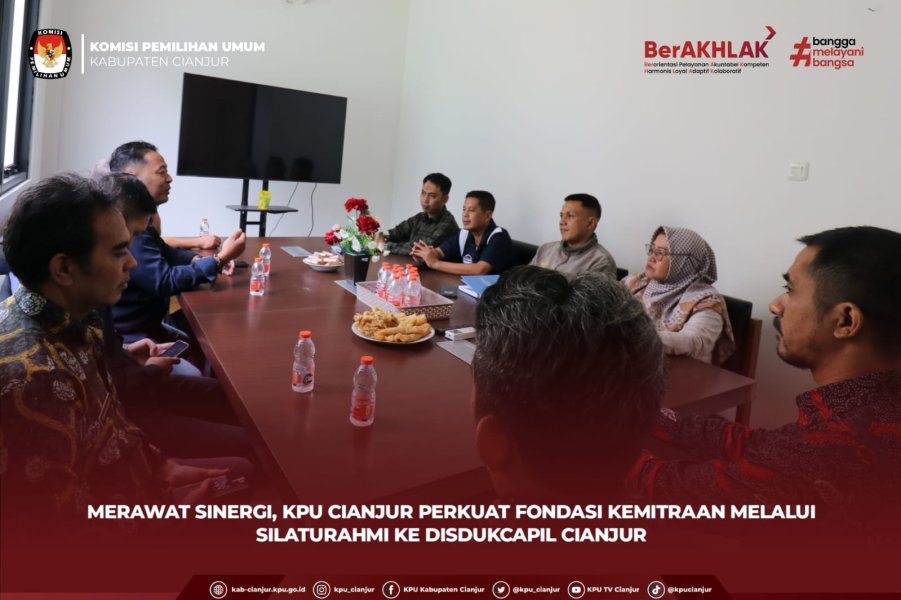 Cianjur - Komisi Pemilihan Umum (KPU) Kabupaten Cianjur melaksanakan kunjungan silaturahmi dan audiensi ke Kantor Dinas Kependudukan dan Pencatatan Sipil (Disdukcapil) Kabupaten Cianjur sebagai langkah strategis untuk memperkuat koordinasi serta membangun sinergi dalam menjaga kualitas dan akurasi data pemilih pada Jumat (13/2). Pertemuan yang berlangsung hangat di ruang rapat Disdukcapil tersebut disambut langsung oleh Sekretaris Disdukcapil Kabupaten Cianjur, N. Neneng Rostiantie, SH. Turut mendampingi, Kabid Pemanfaatan Data dan Inovasi Pelayanan Subekty Alimin Nur, SH, MH; Kabid Pengelolaan Informasi Administrasi Kependudukan Redy Achmad Fajar, ST; serta Jafung Analis Kebijakan Asep Sodikin, SE. Rombongan KPU Cianjur dipimpin oleh Ketua KPU, Muchamad Ridwan, didampingi Ketua Divisi Sosialisasi, Pendidikan Pemilih, Partisipasi Masyarakat, dan SDM Fikri Audah NSY; Sekretaris KPU Kabupaten Cianjur, Muhammad Thomas Iqbal, Kepala Subbagian Keuangan, Umum Dan Logistik, Krishnamoni, Kepala Subbagian Teknis Penyelenggaraan Pemilu Dan Hukum, Sanatha Perguna, serta Operator Sidalih KPU Kabupaten Cianjur. Dalam kesempatan tersebut, KPU memohon dukungan Disdukcapil untuk bersama-sama memberikan pemahaman kepada masyarakat, khususnya pemilih pemula, mengenai pentingnya melakukan perekaman dan pengurusan KTP-el tepat saat memasuki usia 17 tahun. Pembuatan KTP-el sejak dini menjadi perhatian utama karena merupakan salah satu syarat mendasar bagi warga negara untuk dapat menggunakan hak pilihnya secara sah dalam setiap penyelenggaraan Pemilu. Pertemuan ini juga membahas pentingnya menjaga akurasi data pemilih agar tidak terjadi data ganda, data tidak valid, maupun kesalahan administratif lainnya yang berpotensi memengaruhi kualitas daftar pemilih. KPU dan Disdukcapil menegaskan komitmen untuk terus memperkuat koordinasi dalam proses pemutakhiran dan sinkronisasi data kependudukan, sehingga setiap warga yang memenuhi syarat dapat terdaftar secara tepat, akurat, dan sesuai ketentuan peraturan perundang-undangan. Silaturahmi ini diharapkan semakin memperkuat harmoni kelembagaan demi mewujudkan Pemilu yang berintegritas, transparan, dan berkualitas di Kabupaten Cianjur. #KPUMelayani ....