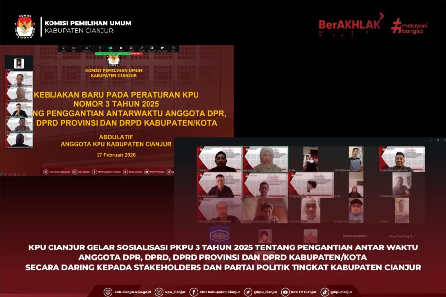 #Temanpemilih, Komisi Pemilihan Umum (KPU) Kabupaten Cianjur menggelar kegiatan sosialisasi secara daring terkait Peraturan KPU (PKPU) Nomor 3 Tahun 2025 tentang Penggantian Antarwaktu (PAW) Anggota DPR, DPRD Provinsi, dan DPRD Kabupaten/Kota, Jumat (27/02). Kegiatan ini diikuti oleh jajaran pengurus Partai Politik tingkat Kabupaten Cianjur serta sejumlah pemangku kepentingan, di antaranya Bawaslu Kabupaten Cianjur, Badan Kesatuan Bangsa dan Politik Kabupaten Cianjur, serta Sekretariat DPRD Kabupaten Cianjur. Kegiatan dibuka secara resmi oleh Ketua KPU Kabupaten Cianjur, Muchamad Ridwan. Dalam sambutannya, beliau menyampaikan bahwa sosialisasi ini merupakan langkah strategis guna memastikan adanya kesamaan pemahaman seluruh pengurus Partai Politik di tingkat Kabupaten Cianjur terhadap regulasi terbaru mengenai mekanisme PAW. Selanjutnya, sambutan dan arahan disampaikan oleh Ketua Divisi Teknis Penyelenggaraan KPU Provinsi Jawa Barat, Adie Saputro. Dalam arahannya, ia menekankan pentingnya kepatuhan terhadap regulasi yang berlaku. Pelaksanaan PAW anggota DPRD, menurutnya, harus dilaksanakan secara cermat, akuntabel, serta sepenuhnya berpedoman pada mekanisme dan ketentuan peraturan perundang-undangan. Memasuki sesi inti, materi teknis disampaikan oleh Ketua Divisi Teknis Penyelenggaraan Pemilu KPU Kabupaten Cianjur, Abdulatif. Ia memaparkan secara komprehensif sejumlah poin perubahan dalam PKPU Nomor 3 Tahun 2025, mulai dari tahapan verifikasi dokumen calon pengganti, batas waktu pengusulan oleh partai politik, hingga prosedur koordinasi antara KPU dan pimpinan DPRD dalam proses administrasi PAW. Meskipun dilaksanakan melalui platform virtual meeting, kegiatan berlangsung interaktif. Para perwakilan partai politik diberikan kesempatan untuk menyampaikan pertanyaan dan berdiskusi secara langsung terkait implementasi ketentuan terbaru tersebut. Melalui sosialisasi ini, diharapkan seluruh pemangku kepentingan memiliki kesamaan persepsi dalam mengimplementasikan regulasi terbaru, sehingga proses PAW dapat berjalan tertib, transparan, dan sesuai dengan prinsip-prinsip demokrasi yang berlandaskan kepastian hukum di Kabupaten Cianjur. #KPUMelayani ....