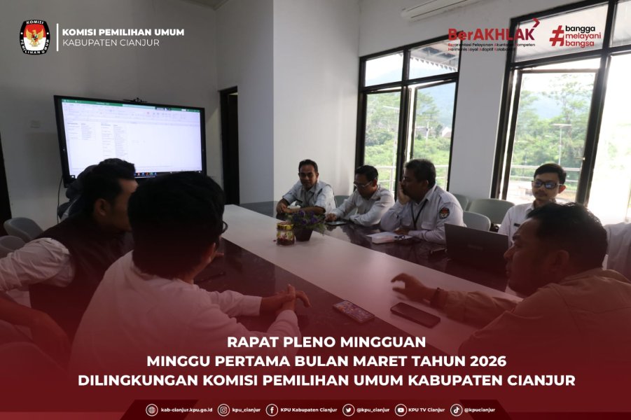 #Temanpemilih, Komisi Pemilihan Umum (KPU) Kabupaten Cianjur melaksanakan Rapat Pleno Mingguan pada Minggu Pertama bulan Maret 2026. Kegiatan ini berlangsung di ruang rapat KPU Kabupaten Cianjur pada Senin (2/3). Rapat dibuka oleh Ketua Divisi Hukum dan Pengawasan Misbahudin, dihadiri oleh Ketua KPU Kabupaten Cianjur, Muchamad Ridwan, para anggota KPU Kabupaten Cianjur, yaitu Kepala Divisi Perencanaan, Data Dan Informasi, Rustiman; Ketua Divisi Teknis Penyelenggaraan Pemilu Abdulatif; serta hadir pula para kepala subbagian dan staf sekretariat. Dalam pembahasan, disampaikan bahwa untuk coretax secara umum sudah tidak terdapat permasalahan. Namun demikian, masih terdapat kendala, khususnya terkait adanya selisih lebih atau kurang bayar yang perlu dilakukan penyesuaian lebih lanjut. Selain itu, rapat pleno juga membahas revisi Rencana Anggaran Biaya (RAB) pada kegiatan sosialisasi. Kegiatan sosialisasi yang semula direncanakan sebanyak tiga kegiatan, disesuaikan menjadi dua kegiatan. Penyesuaian ini dilakukan dengan mempertimbangkan efektivitas pelaksanaan serta efisiensi anggaran. Di sisi lain, terdapat penambahan satu kegiatan teknis yang dimasukkan dalam revisi RAB sebagai bagian dari optimalisasi dukungan teknis pelaksanaan tugas dan fungsi KPU Kabupaten Cianjur. Rapat pleno berlangsung dengan pembahasan yang konstruktif dan menghasilkan kesepakatan untuk segera menindaklanjuti setiap penyesuaian agar pelaksanaan program kerja tetap berjalan tertib, akuntabel, dan sesuai dengan ketentuan yang berlaku. #KPUMelayani ....