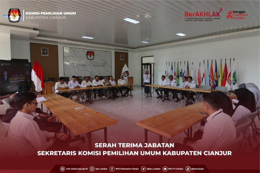 Cianjur - KPU Kabupaten Cianjur melaksanakan kegiatan Serah Terima Jabatan Sekretaris pada Senin (16/3) di Aula Kantor KPU Kabupaten Cianjur. Kegiatan ini dihadiri oleh Ketua dan Anggota KPU Kabupaten Cianjur serta seluruh jajaran sekretariat. Acara diawali dengan pembukaan oleh pembawa acara dan dilanjutkan dengan doa bersama sebagai bentuk harapan agar pelaksanaan tugas dan tanggung jawab kelembagaan ke depan dapat berjalan dengan baik. Prosesi inti kegiatan ditandai dengan penandatanganan Berita Acara Serah Terima Jabatan dari Sekretaris lama KPU Kabupaten Cianjur, Muhammad Thomas Iqbal, kepada Sekretaris KPU Kabupaten Cianjur yang baru, Asep Budiyanto. Setelah prosesi penandatanganan, kegiatan dilanjutkan dengan sambutan dari Muhammad Thomas Iqbal yang menyampaikan kesan dan pesan selama menjalankan tugas di lingkungan KPU Kabupaten Cianjur. Ia menyampaikan apresiasi kepada seluruh jajaran sekretariat atas kerja sama dan dukungan yang telah terjalin selama masa pengabdiannya. Selanjutnya, Asep Budiyanto dalam sambutannya menyampaikan komitmennya untuk melanjutkan berbagai program yang telah berjalan serta memperkuat dukungan teknis dan administratif dalam mendukung kinerja kelembagaan. Ketua KPU Kabupaten Cianjur, Muchamad Ridwan, dalam sambutannya menyampaikan apresiasi atas dedikasi dan kontribusi Muhammad Thomas Iqbal selama menjabat sebagai Sekretaris KPU Kabupaten Cianjur. Ia juga berharap kepemimpinan sekretariat yang baru dapat semakin memperkuat koordinasi dan sinergi dalam mendukung pelaksanaan tugas dan program KPU Kabupaten Cianjur ke depan. Pada kesempatan tersebut, para Anggota KPU Kabupaten Cianjur turut menyampaikan kesan, pesan, serta arahan kepada Sekretaris lama maupun Sekretaris yang baru. Mereka mengapresiasi dedikasi yang telah diberikan serta berharap jajaran sekretariat dapat terus menjaga profesionalitas dan meningkatkan kualitas dukungan teknis serta administratif dalam pelaksanaan tugas-tugas kelembagaan. Rangkaian kegiatan kemudian ditutup dengan sesi foto bersama sebagai simbol kebersamaan dan komitmen seluruh jajaran KPU Kabupaten Cianjur dalam mendukung pelaksanaan tugas kelembagaan. #KPUMelayani ....