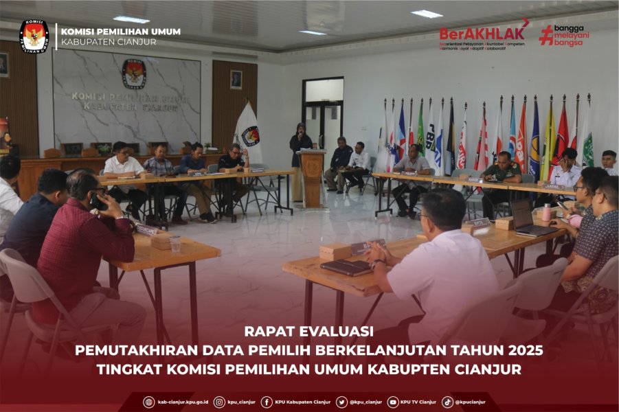 CIANJUR - Komisi Pemilihan Umum (KPU) Kabupaten Cianjur menggelar Rapat Evaluasi Pemutakhiran Data Pemilih Berkelanjutan (PDPB) Tahun 2025 pada Selasa (23/12), bertempat di Kantor KPU Kabupaten Cianjur. Kegiatan ini menjadi ruang refleksi bersama atas pelaksanaan PDPB sepanjang Tahun 2025 sekaligus tindak lanjut dari rapat pleno terbuka rekapitulasi PDPB Semester II yang sebelumnya dilaksanakan di KPU Provinsi Jawa Barat.