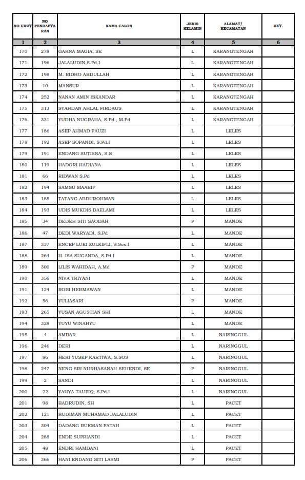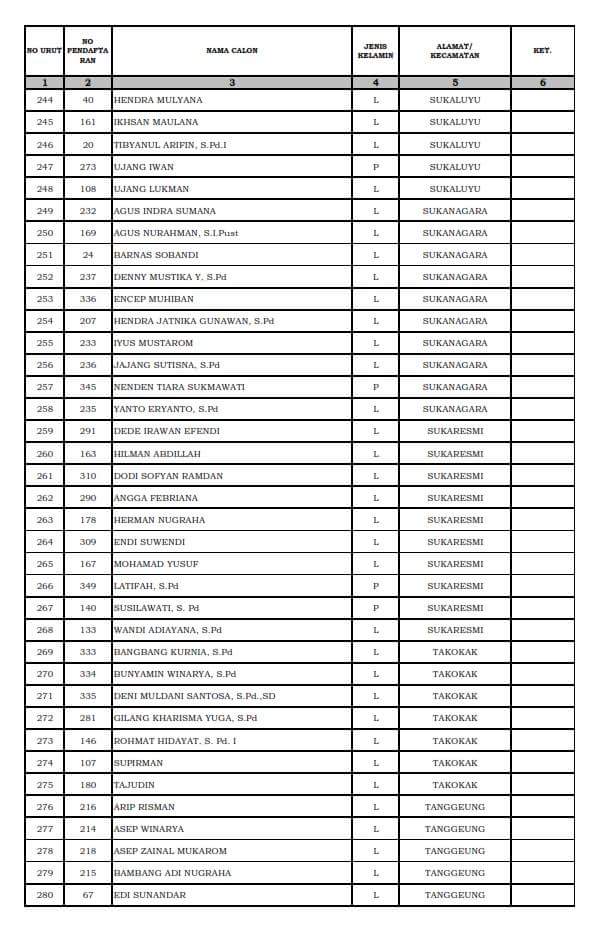PENGUMUMAN : Hasil test tertulis calon anggota PPK pilgub 2018 kpu kabupaten cianjur