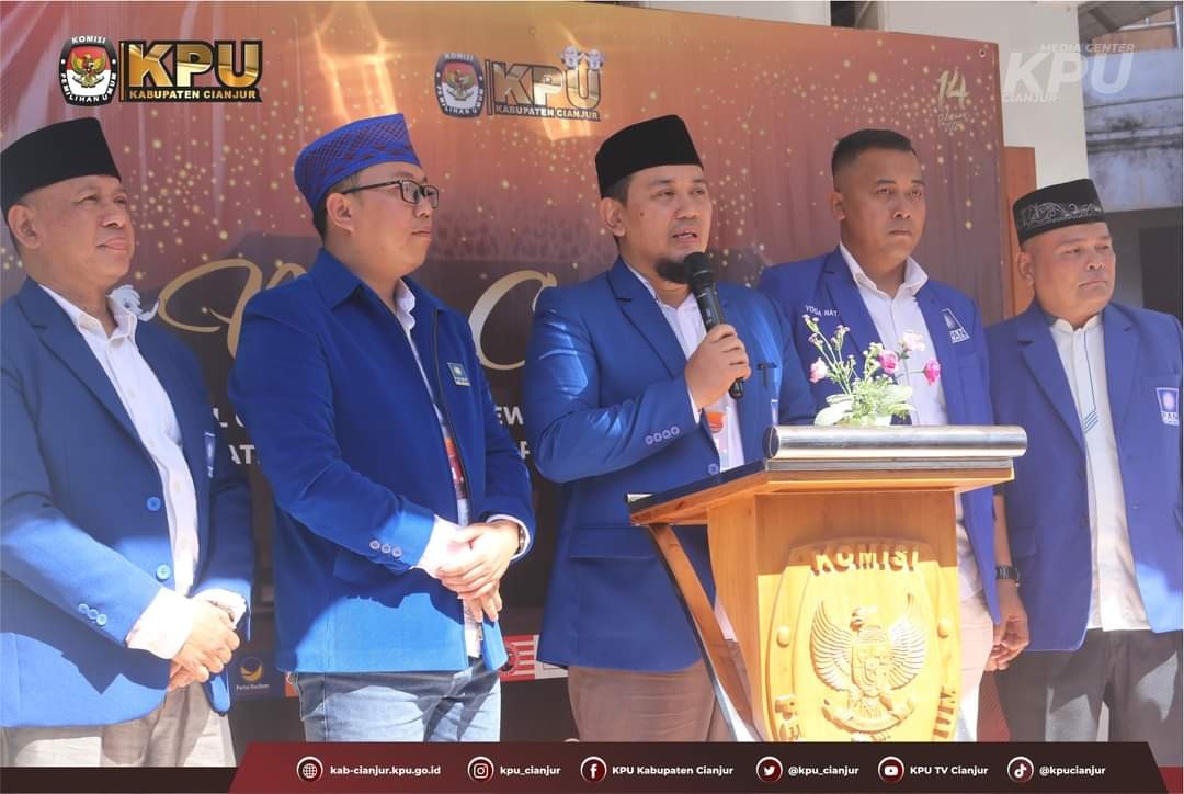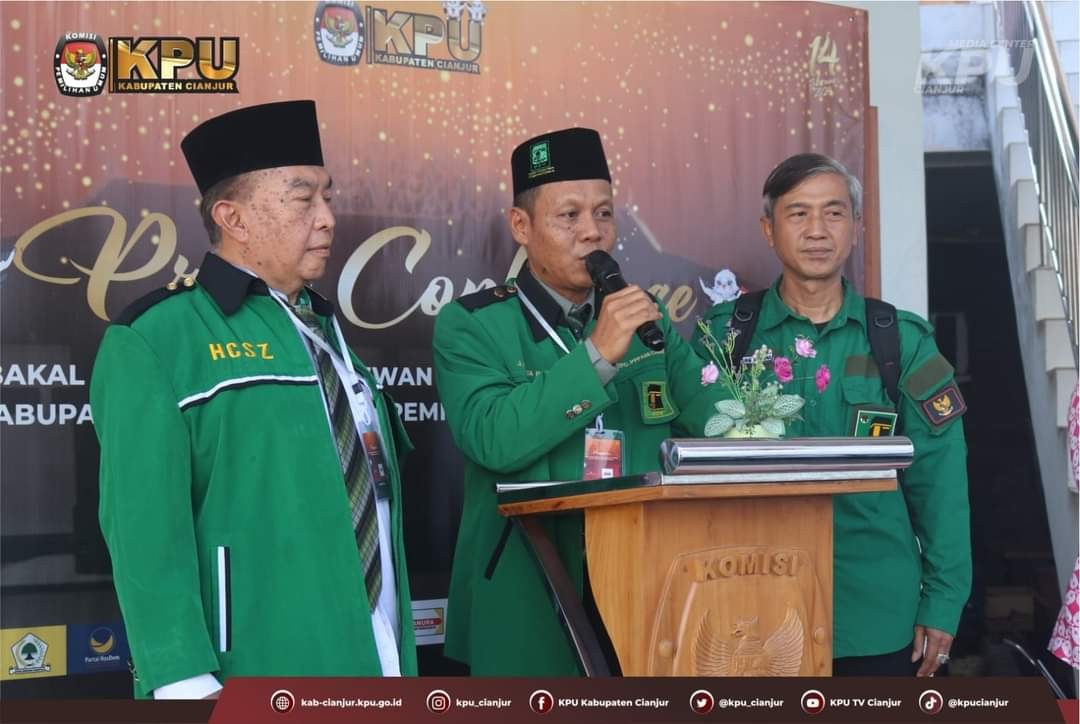 Cianjur – Dewan Perwakilan Cabang (DPC) Partai Persatuan Pembangunan (PPP) Kabupaten Cianjur secara resmi mengajukan bakal calon anggota Dewan Perwakilan Rakyat Daerah (DPRD) sebagai Peserta Pemilihan Umum Tahun 2024 kepada Komisi Pemilihan Umum Kabupaten Cianjur, Jumat, (12/5). Menyambut kedatangan sekaligus menerima pengajuan bakal calon dari DPC PPP, Ketua KPU Kabupaten Cianjur, Selly Nurdinah menyampaikan ucapan selamat datang kepada Ketua DPC PPP beserta jajaran yang hadir “kami ucapkan selamat datang di Kantor KPU Cianjur kepada Pak Ketua DPC PPP beserta renrengan, telah kami terima dokumen pengajuan bakal calonnya dan telah saya serahkan kepada verifikator kami untuk segera dilakukan pengecekan terhadap kelengkapan dokumen yang disampaikan, dan tentunya akan segera kami informasikan kembali bilamana nanti ada kekurangan yang harus dilengkapi" ujarnya. DPD PPP Cianjur merupakan partai ke-5 (lima) yang mengajukan bakal calon setelah dibukanya penerimaan pengajuan bakal calon anggota DPRD oleh KPU Cianjur, dalam kesempatan tersebut Ketua DPC PPP, Jimmi Perkasa Has menyampaikan rasa terima kasihnya kepada KPU Cianjur serta pihak yang terlibat dalam kelancaran partainya dari mulai proses penyusunan berkas hingga penyerahan dokumen kepada KPU. “Alhamdulliah saya sampaikan syukur dan terima kasih kepada KPU Cianjur khususnya telah menerima kami dengan baik dalam menyampaikan pengajuan bakal calon pemilu 2024 ini, pun kepada Bawaslu Cianjur, serta pihak-pihak lain yang terlibat dalam kelancaran kegiatan kami dalam mengajukan bakal calon” ucap Jimmi di awal sambutan. Kepada media Jimmi mengungkapkan jumlah bakal calon yang diajukan DPC PPP Cianjur tersebut sebanyak 50 orang kader terbaik dengan keterwakilan perempuan melebihi 30 persen. “Insya Allah, 50 bakal calon yang kami sampaikan merupakan kader terbaik kami dan telah memenuhi keterwakilan 30 persen perempuan pada setiap dapilnya, perlu diketahui juga komposisi bakal calon yang disampaikan merupakan sinergitas antara milenial dan kolonial” candanya kepada media. Dirinya meyakini bakal calon yang diajukannya telah memenuhi syarat yang ditetapkan dan akan diterima oleh KPU, jikapun ada kekurangan atau koreksi dalam pengajuan ini tentunya pihaknya akan segera melengkapi dan memperbaiki. ~MFA