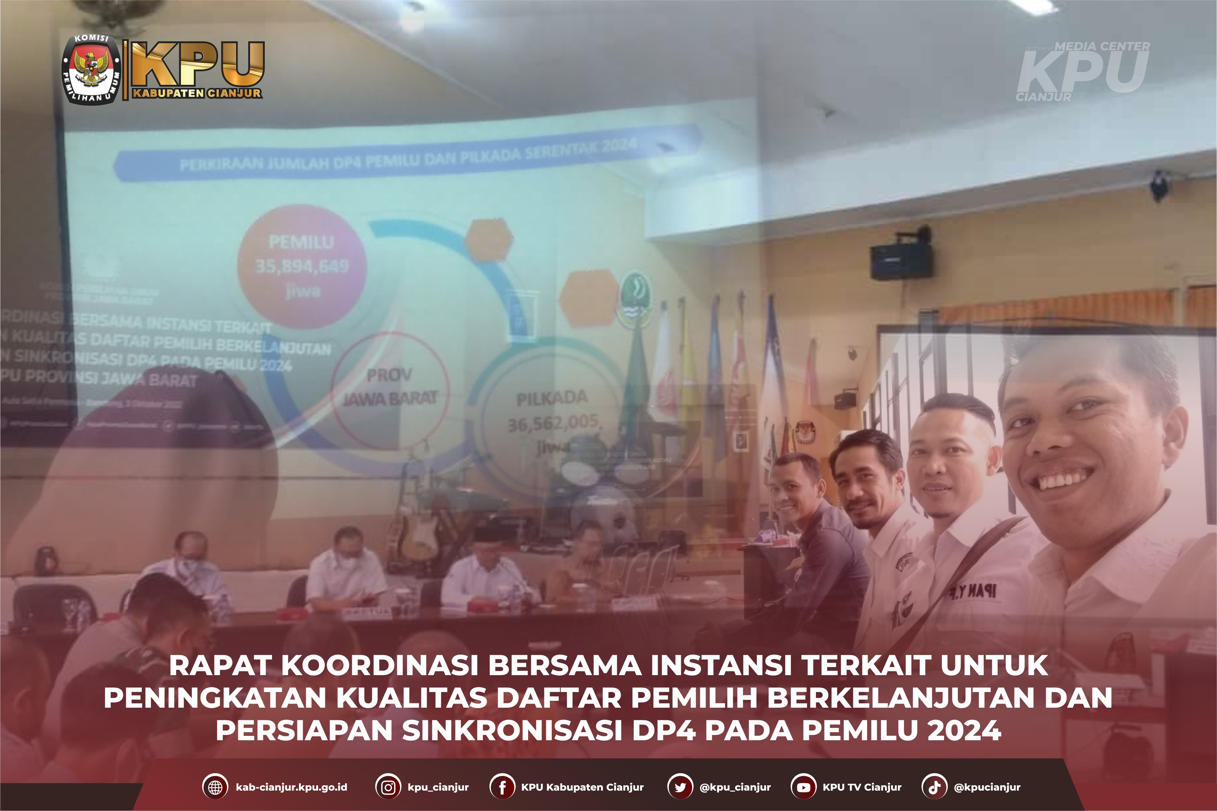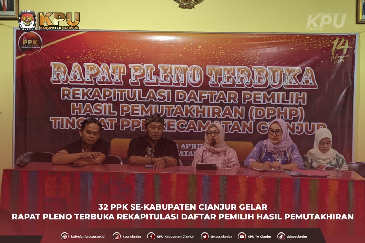 Cianjur - KPU Kabupaten Cianjur menggelar Rapat Pleno Terbuka Rekapitulasi dan Penetapan Daftar Pemilih Sementara (DPS) Pemilu Tahun 2024. Bertempat di Grand Bydiel Ballroom, Rabu (5/4) kegiatan dihadiri oleh peserta yang terdiri atas Ketua beserta Anggota PPK Divisi Perencanaan Data dan Informasi se-Kabupaten Cianjur, serta mengundang perwakilan dari pengurus partai politik tingkat Kabupaten Cianjur serta Stakeholders. Hadir membuka kegiatan sekaligus memberikan sambutan Ketua KPU Kabupaten Cianjur, Selly Nurdinah, memberikan apresiasi dan ucapan terimakasih kepada seluruh PPK, PPS, dan Pantarlih dalam hal ini telah melaksanakan pemutakhiran data pemilih dari mulai pelaksanaan Pencocokan dan Penelitian oleh Pantarlih, Rekapitulasi di Tingkat PPS, PPK, hingga sampai pada kegiatan dilakukan Rekapitulasi dan Penetapan Daftar Pemilih Sementara (DPS) oleh KPU Kabupaten Cianjur. "Apa yang sudah dilaksanakan oleh PPK dan PPS dari mulai tahap coklit yang juga melibatkan Pantarlih, juga dengan rekapitulasi yang telah dilakukan oleh PPS di tingkat desa, tentu bukan pekerjaan yang mudah. Tidak sampai disitu, rekapitulasi kembali dilakukan di tingkat kecamatan tentunya. Namun para PPK dan PPS juga Partarlih yang ada di Kabupaten Cianjur tidak menyerahkan dan terus berupaya untuk mendapatkan data yang valid. Tentu saya apresiasi ini dan banyak mengucapkan banyak terima kasih." Ucap Ketua KPU Kabupaten Cianjur tersebut. Disampaikannya juga bahwa gelaran Rapat Pleno Terbuka ini merupakan salah satu bentuk tanggung jawab atas kinerja kita semua dalam melaksanakan tahapan pemutakhirkan data pemilih. "Setelah itu teman-teman menyampaikan laporan DPS kepada KPU. Saya ucapkan terimakasih. Mulai dari pemuktahiran data pemilih hingga akan kita pertanggungjawabkan di rapat pleno terbuka ini." Tambahnya. "Dan apabila dalam keberjalanan rapat ini dirasa terdapat satu dan lain hal, kami sangat terbuka untuk menerima koreksi dan masukan dari teman-teman lainnya yang hadir di forum ini, kami membuka pintu selebar-lebarnya apabila teman-teman ingin mengoreksi data yang nanti disampaikan, kami persilahkan." pungkasnya dalam sambutan Memasuki acara inti, kegiatan dipandu oleh Ketua KPU Kabupaten Cianjur dengan pembacaan Berita Acara Rekapitulasi Daftar Pemilih Hasil Pemutakhiran tingkat kecamatan oleh masing-masing PPK yang kemudian kembali dilakukan rekapitulasi oleh KPU Cianjur untuk ditetapkan sebagai Daftar Pemilih Semetara (DPS) Pemilu 2024. Sebagai informasi, dalam pleno tersebut KPU Kabupaten Cianjur menetapkan Rekapitulasi Daftar Pemilih Sementara (DPS) Kabupaten Cianjur dengan rincian, jumlah kecamatan sebanyak 32 kecamatan, jumlah desa/kelurahan sebanyak 360 desa/kelurahan, jumlah TPS sebanyak 7.278 TPS, dan jumlah daftar pemilih sementara sebanyak 1.846.503 pemilih yang terdiri dari 938.667 pemilih laki-laki dan 907.836 pemilih perempuan yang dituangkan kedalam Berita Acara KPU Cianjur Nomor 213/PL.01.2-BA/3203/2023 tentang Rekapitulasi Daftar Pemilih Sementara (DPS) Tingkat Kabupaten Cianjur Pemilihan Umum Tahun 2024. Adapun diakhir kegiatan Penetapan DPS di sah kan dalam Pleno serta disampaikan Salinan Berita Acara kepada pihak terkait yang hadir dalam Rapat Pleno. ~MFA