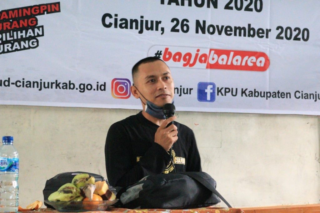 Plt Kepala Dinas Kesehatan Kabupaten Cianjur, Dr Irvan Nur Fauzi, M.Kes, memberikan pemaparan materi tentang penerapan protokol kesehatan pada hari H pemungutan suara pada 9 Desember 2020 nanti. Sedangkan Koordinator Divisi Pengawasan dan Hubungan Antarlembaga Bawaslu Kabupaten Cianjur, Hadi Dzikri Nur, menyampaikan hal-hal berkaitan aturan-aturan yang telah ditetapkan.