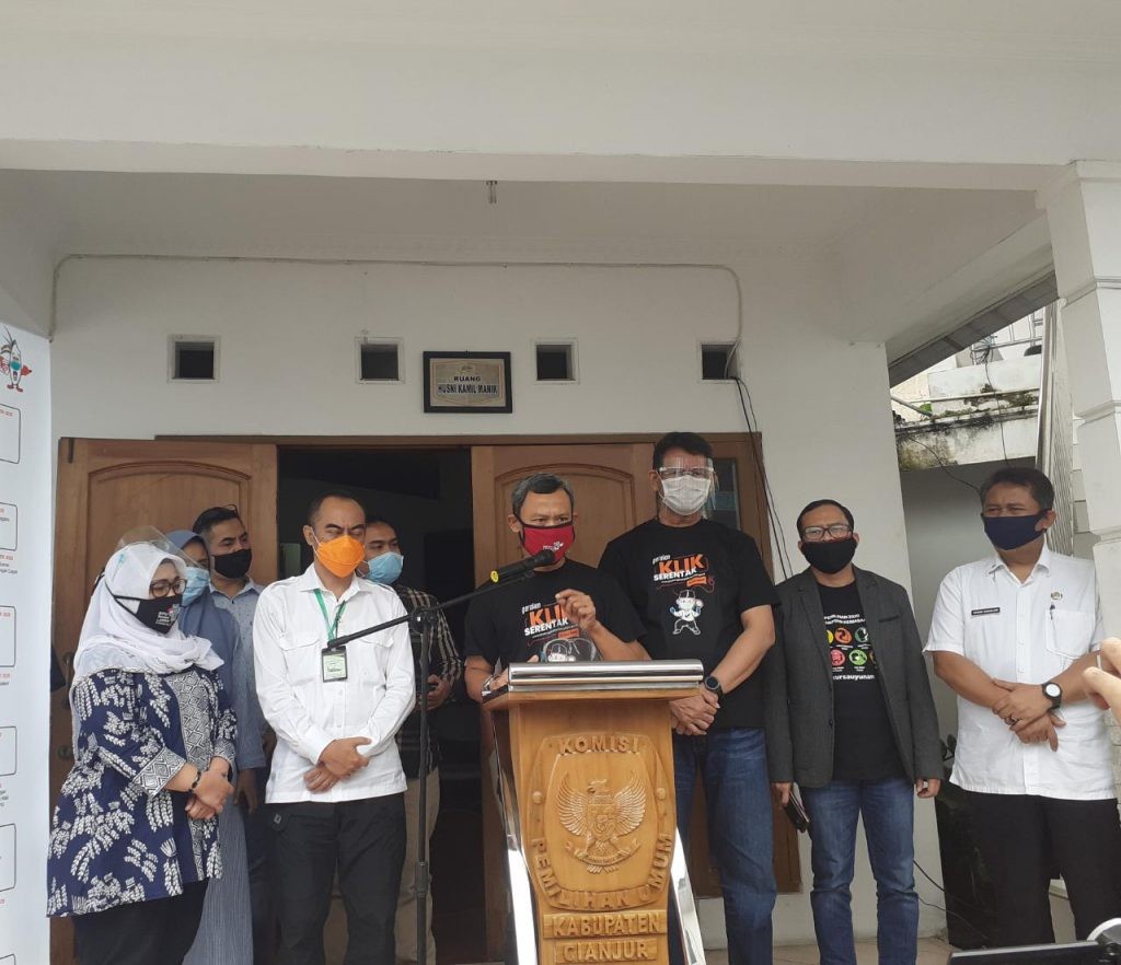 Komisi Pemilihan Umum (KPU) Kab. Cianjur melaksanakan kegiatan Gerakan Klik Serentak (GKS) yang digelar oleh KPU RI. Rabu (15/7). Kegiatan ini diikuti pula oleh 309 kabupaten dan kota yang tersebar di 270 daerah yang menggelar pemilihan kepala daerah. Dalam giat tersebut, turut hadir Komisioner KPU RI, Pramono Ubaid Thantowi beserta jajaran, Ketua KPU Provinsi Jabar, Rifqi Ali Mubarok beserta jajaran, KPU Kota Sukabumi, KPU Bandung Barat dan KPU Purwakarta serta Pemerintah Daerah yang diwakili oleh Sekda di kantor KPU Kab. Cianjur. Gerakan Klik Serentak (GKS) tersebut digelar sebelum tahapan pencocokan dan penelitian data pemilih yang akan dilaksanakan dari 15 Juli hingga 13 Agustus 2020. Gerakan klik serentak sendiri sebagaimana dijelaskan Komisioner KPU RI, Pramono memiliki tujuan agar masyarakat bisa mengetahui apakah mereka sudah terdaftar atau belum sebagai datar pemilih. KGC dipusatkan di kantor sekretariat KPU Cianjur dan diikuti oleh seluruh jajaran PPK, PPS, PPDP bahkan masyarakat umum. Masyarakat pemilih dapat melihat data dirinya tersebut dengan mengakses secara dalam jaringan (daring) pada laman https://www.lindungihakpilihmu.kpu.go.id melalui android. “Semua masyarakat dan daerah yang menyelenggarakan pemilihan kepala daerah, pemilihnya bisa mengakses ke laman (gerakan klik serentak) tersebut,” jelasnya. Pelaksanaan Gerakan Klik Serentak akan dipantau KPU RI dan nantinya KPU akan mengumumkan masyarakat di daerah mana yang paling banyak mengunjungi laman website tersebut. Sementara itu, untuk konfirmasi ditetapkannya sebagai pemilih kata dia tetap melalui coklit oleh PPDP sesuai undang-undang dan Peraturan KPU yang mengatur tentang pencocokan dan penelitian melalui PPDP.
