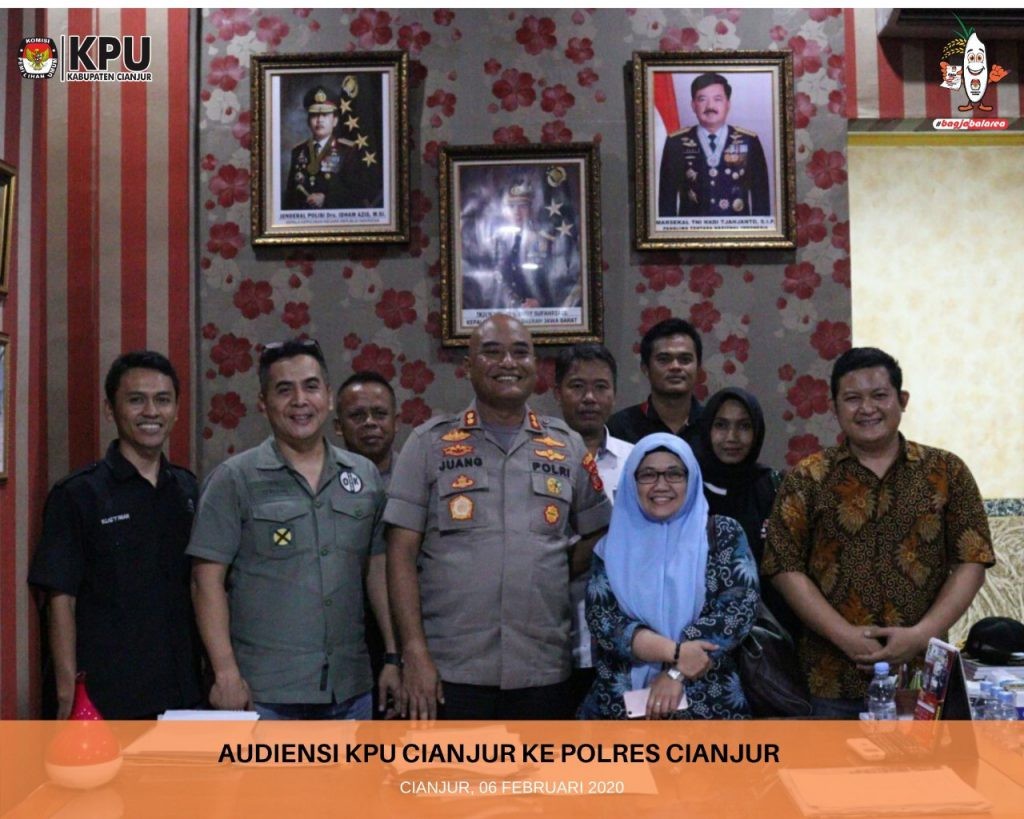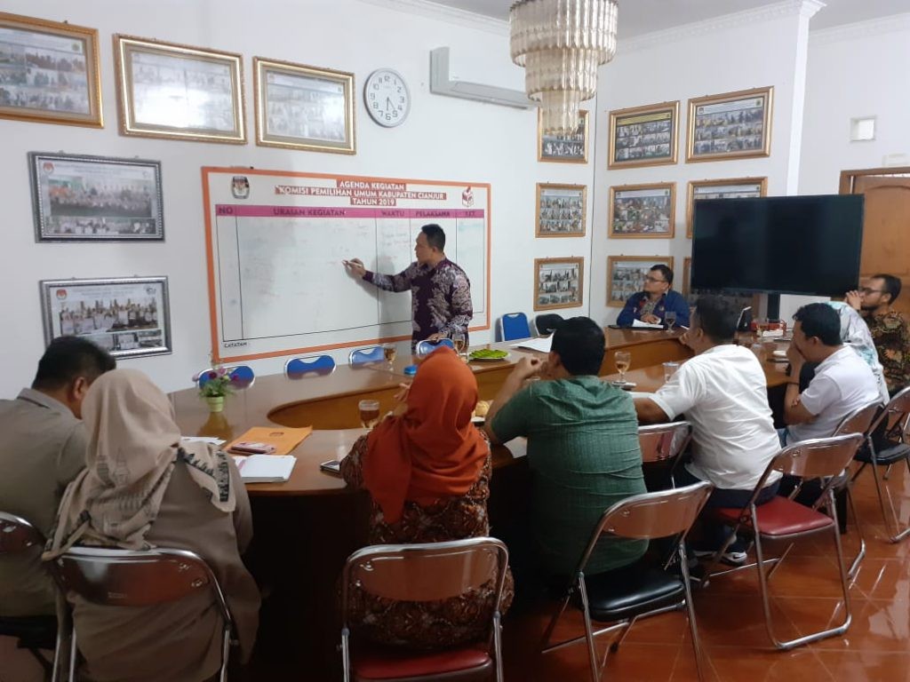 Cianjur. Utusan Biro Logistik KPU RI, Fandu Dwiadma Oktavirawan dan I Nyoman Danan kunjungi KPU Cianjur dalam rangka Koordinasi, Supervisi dan Asistensi (KSA) untuk mempersiapkan pengadaan Pilkada Tahun 2020 dan mengantisipasi Pemilihan Setentak Tahun 2020. Kunjungan KPU RI tersebut diterima langsung oleh Ketua KPU Kabupaten Cianjur, Selly Nurdinah berserta jajaran Kominsioner KPU Cianjur yaitu Hilman Divisi Hukum, Ridwan Abdullah Divisi Teknis Penyelenggaran, Rustiman Divisi SPPM, Anggy Shofia Divisi Perencanaan Data dan dan didampingi Sekretariat KPU Cianjur dalam hal ini diwakili oleh Plt. Kasubag Umum, Nursyamsi. KSA tersebut digelar di Ruang Rapat Komisioner KPU Cianjur, Senin (3/02/2020).