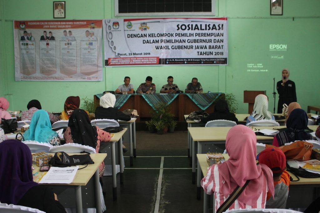 Cianjur.- Dalam rangka Sosialisasi Penyelenggaraan Pemilihan Gubernur dan Wakil Gubernur Jawa Barat Tahun 2018, Komisi Pemilihan Umum (KPU) Kabupaten Cianjur menyelenggarakan Sosialisasi tatap muka bersama kelompok Pemilih Perempuan. Kegiatan ini berlangsung di dua tempat yaitu di Desa Cipendawa Kecamatan Pacet dan GOR Desa Sukanagara, dengan peserta kelompok pemilihperempuandariKecamatanCugenang, Pacet, Cipanas, Sukaresmi, Campaka, CampakaMulya, Sukanagara, danPagelaran (Jum’at, 23/03/2018)